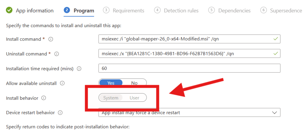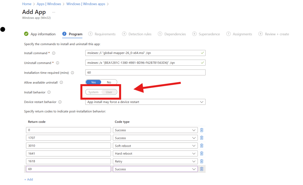 Saved the new msi as global-mapper-26_0-x64-modified.msi, wrapped it and uploaded it to intune.