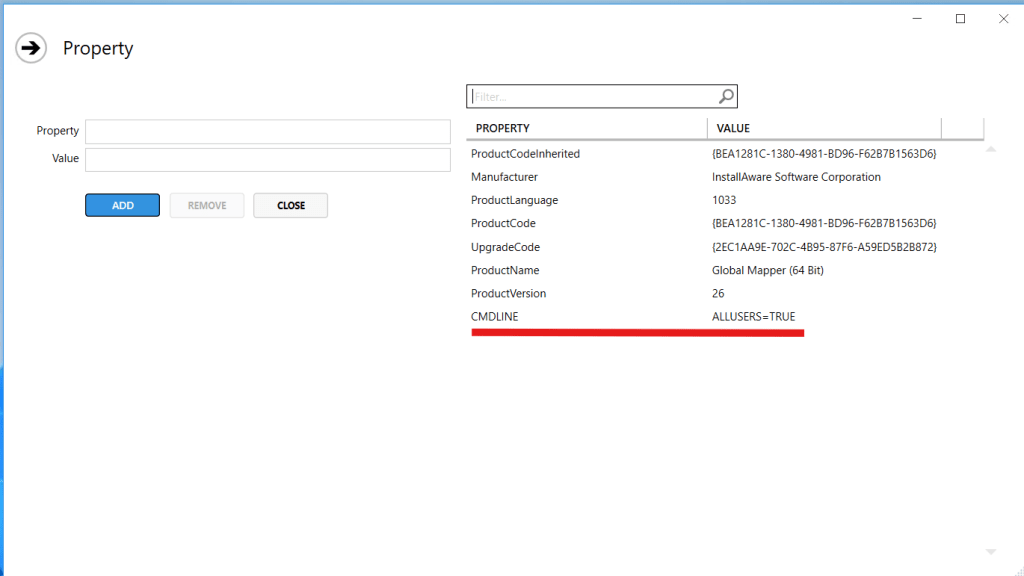 Now im no MSI expert but this didn’t look right to me, a quick search lead me to the msi documentation article about the allusers property. Which indicated that ALLUSERS should have an integer value of 1 or 0.