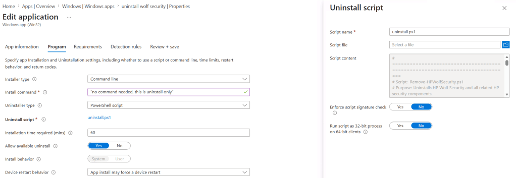 This was an excellent opportunity to make use of the new “powershell script” uninstaller type. just upload the script directly instead of wrapping it as a intunewin file.